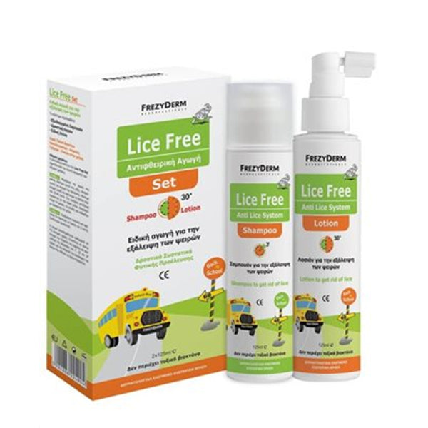 Απαλλαγείτε αποτελεσματικά και με ασφάλεια από τις φθείρες με το Lice Free Set, ένα πλήρες σετ αντιφθειρικής αγωγής που περιλαμβάνει σαμπουάν και λοσιόν σε συσκευασία 2 x 125ml.