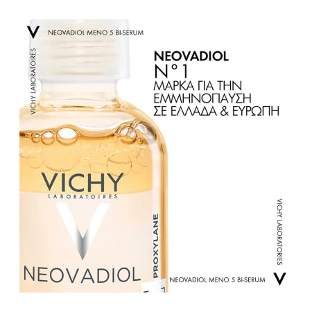 Το Vichy Neovadiol Meno 5 Serum Προσώπου 30ml είναι ένα ενυδατικό και αντιγηραντικό serum σχεδιασμένο για γυναίκες στην εμμηνόπαυση ή την περίοδο γύρω από αυτή. Βοηθά στην αποκατάσταση της χαμένης σφριγηλότητας και της ελαστικότητας της επιδερμίδας, προσφέροντας ορατή αναζωογόνηση. Περιέχει συστατικά που υποστηρίζουν την ανανέωση των κυττάρων και ενδυναμώνουν τον προστατευτικό φραγμό του δέρματος, ενώ προσφέρει βαθιά ενυδάτωση και εξομαλύνει τις λεπτές γραμμές και ρυτίδες. Το προϊόν είναι κατάλληλο για ευαίσθητο δέρμα και είναι δοκιμασμένο υπό δερματολογικό έλεγχο.